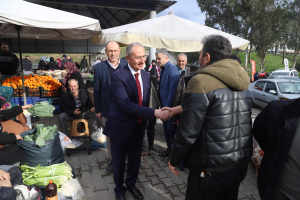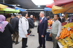 Pazar tezgâhlarını tek tek dolaşan Başkan Dündar, esnafa hayırlı işler ve bol kazanç temennisinde bulunurken, alışveriş yapan vatandaşlarla da sohbet etti.