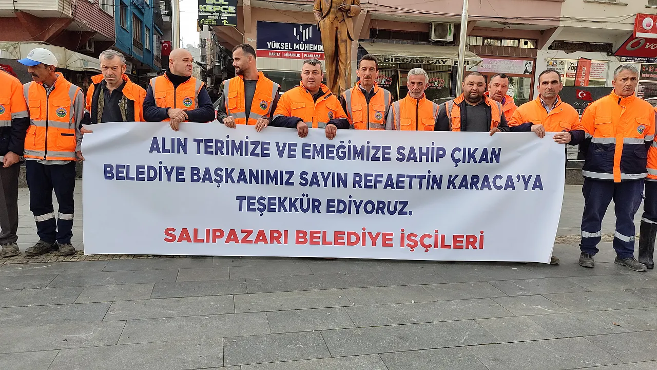 Samsun’un Salıpazarı ilçesinde belediyeye bağlı şirketlerde çalışan işçiler, maaşlarına yapılan zam dolayısıyla Belediye Başkanı Refaettin Karaca’ya teşekkür etti.