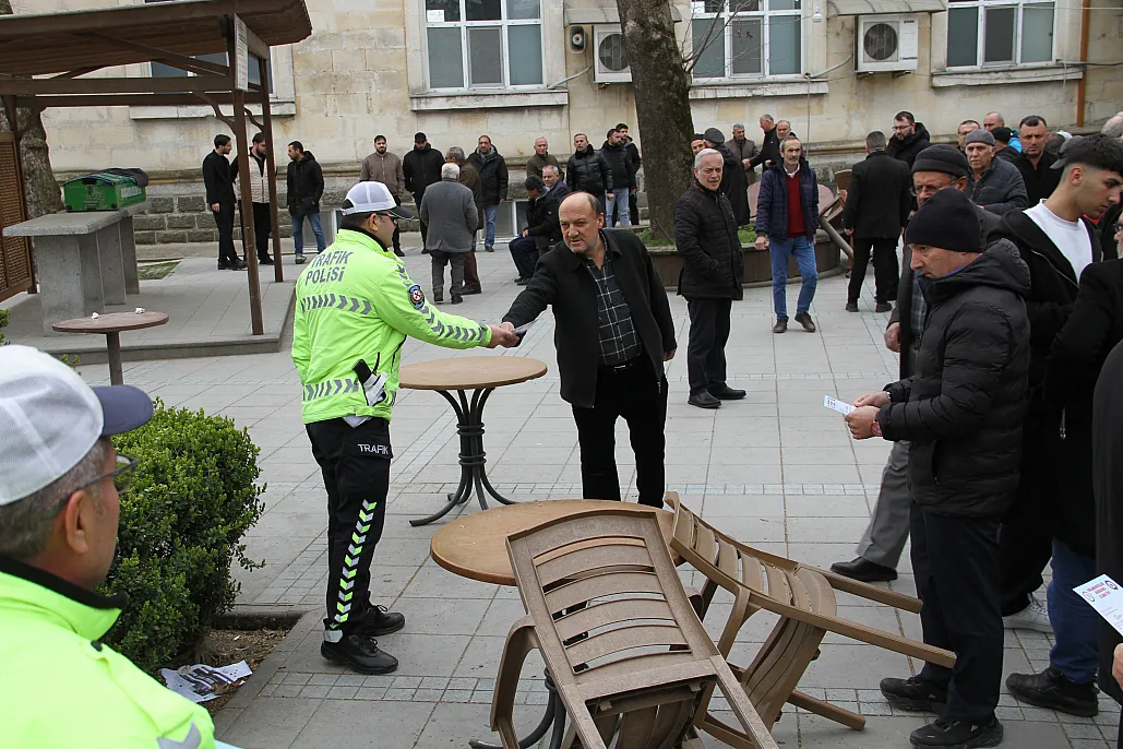 Çarşamba İlçe Emniyet Müdürlüğü, dolandırıcılara karşı cuma namazı çıkışında broşür dağıtımı gerçekleştirdi.