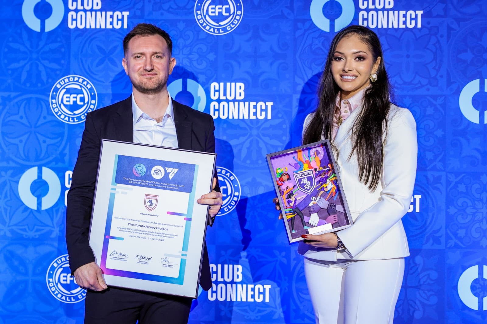 Samsunspor Futbol Kulübü, Avrupa Kulüpler Birliği ve EA Sports FC iş birliğiyle hayata geçirilen “Symbol of Change” (Değişimin Sembolü) programı kapsamında önemli bir başarıya imza attı. Kulübün geliştirdiği “Mor Forma” (Purple Jersey) projesi, Avrupa genelinde 90’dan fazla kulüp arasından seçilen üç proje arasında yer alarak “Symbol of Change” hibe yarışmasını kazandı ve 100.000 Euro hibe desteği almaya hak kazandı.