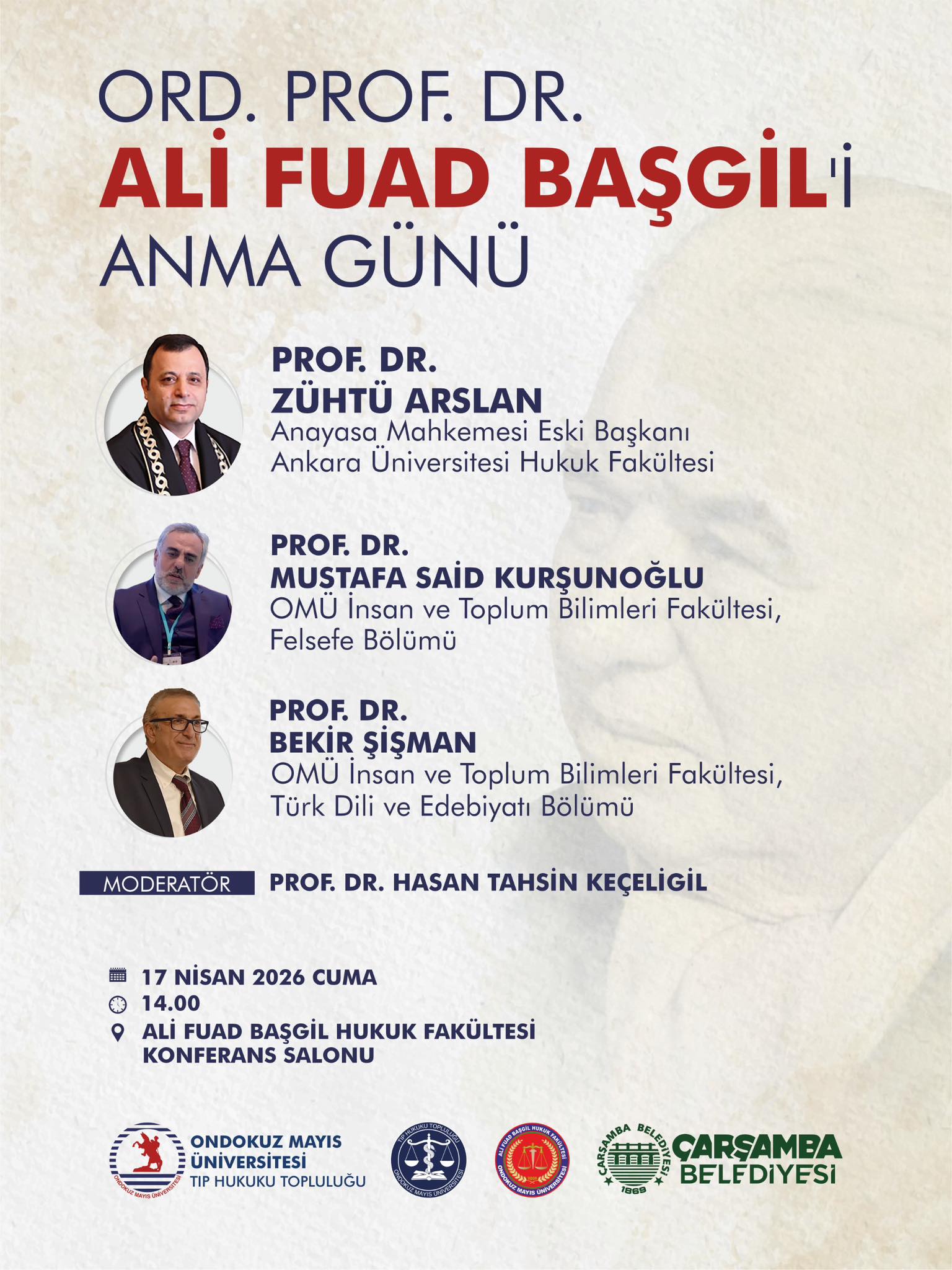 Anma programında Zühtü Arslan’ın yanı sıra, OMÜ’den Mustafa Said Kurşunoğlu ve Bekir Şişman da konuşmacı olarak yer alacak. Katılımcılar, Başgil’in hukuk anlayışını, fikir dünyasını ve Türk kültürüne katkılarını farklı açılardan ele alacak.